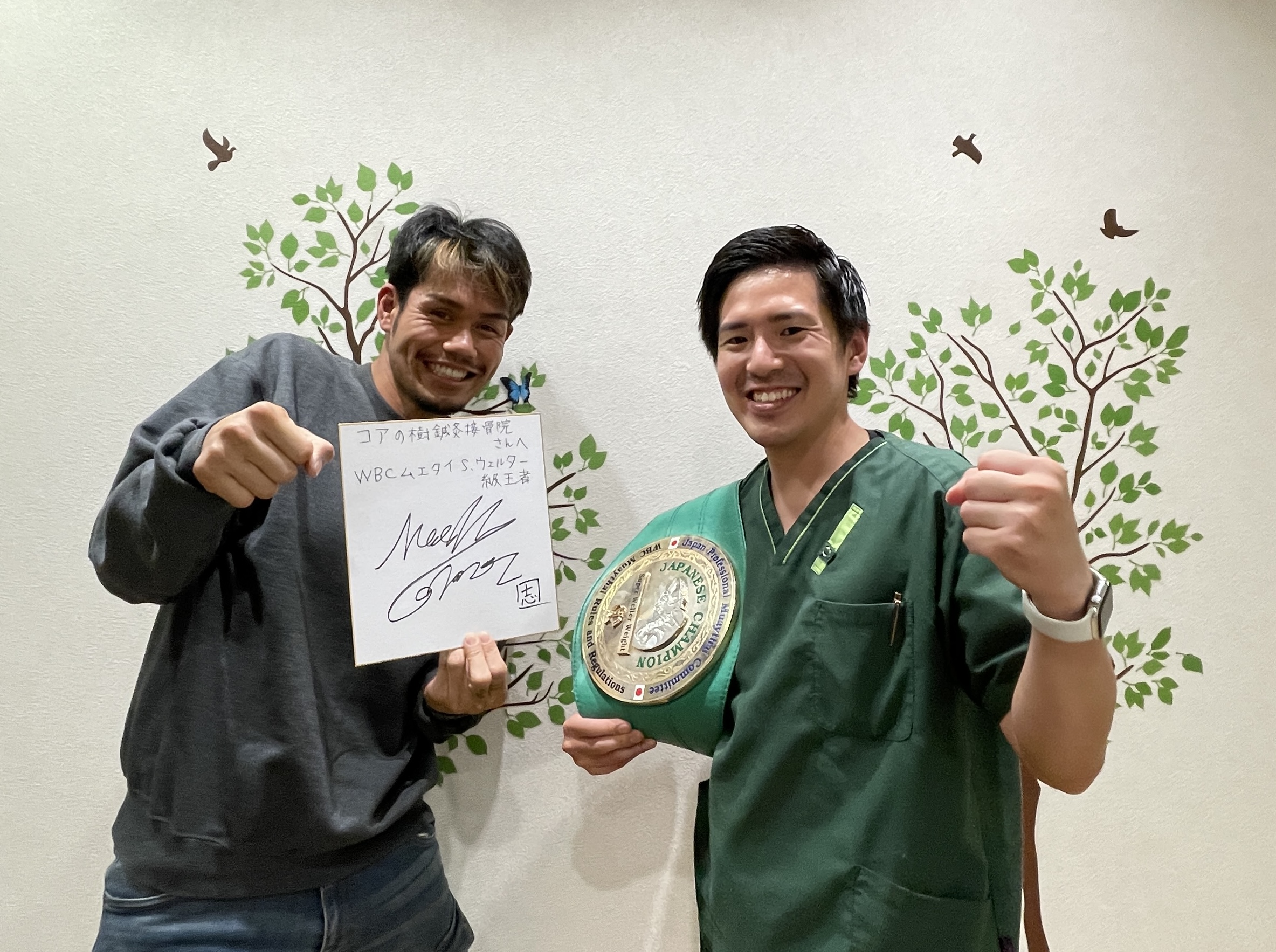 先日、WBCムエタイS.ウェルターチャンピオンの匡志選手が来院してくれました!